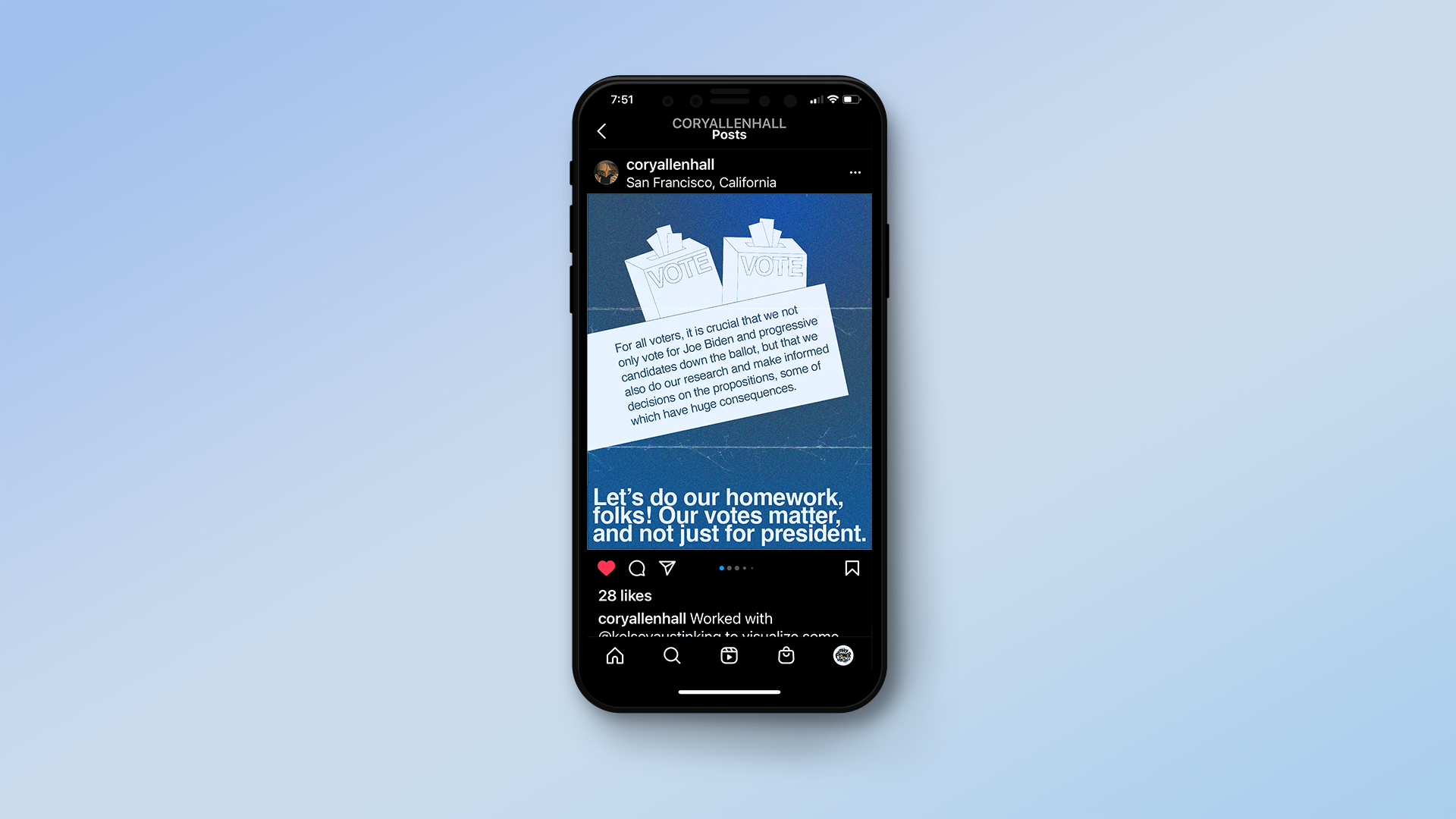 Visual design, typography and illustrations for an Instagram Carousel sharing voter resources.